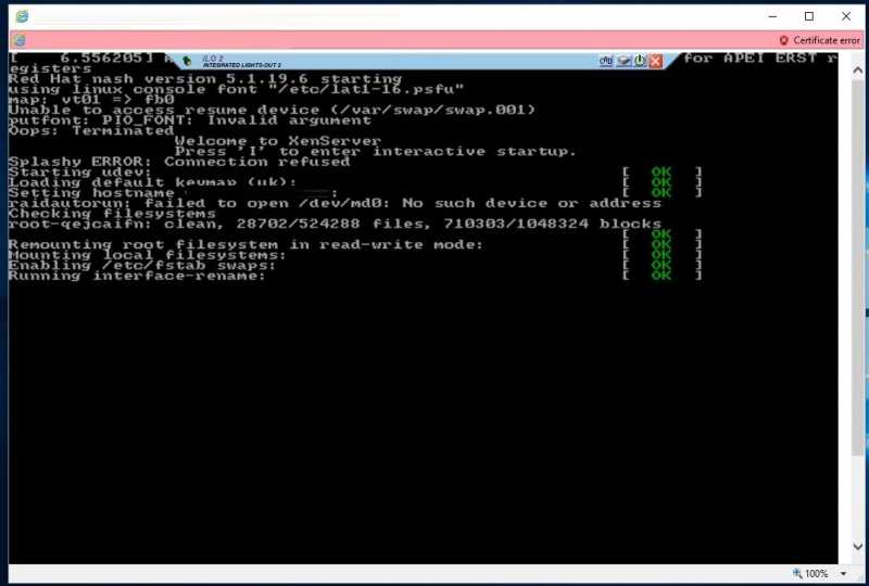 When I boot the XenServers, they pause for approximately 15 minutes, they are stuck at showing several errors: