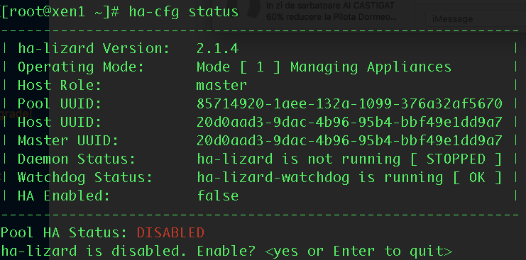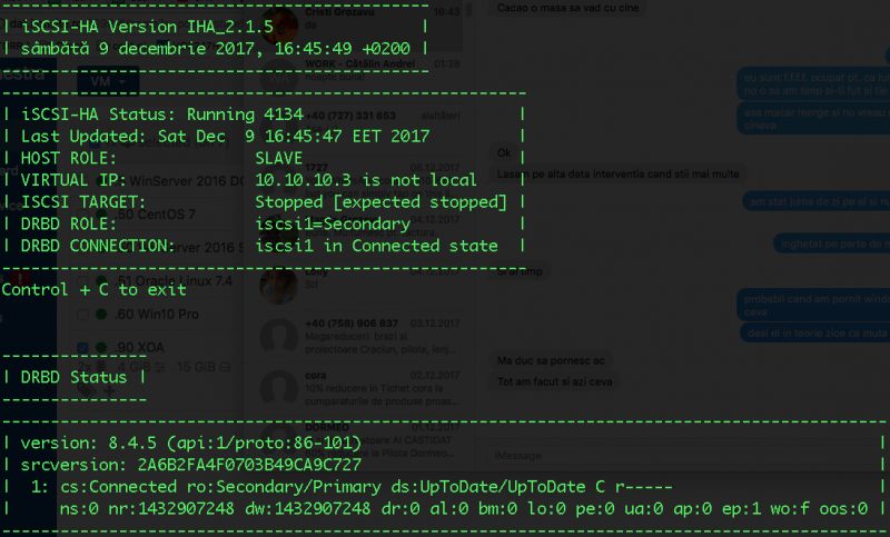 I attached results for both master and slave iscsi-cfg status and ha-cfg status