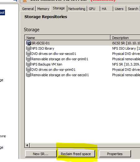 Knowing that the VM is stored physically on the storage "SR-iSCSI DRDB", can I use the functionality "reclaim freed space" to free the space after remove VM ?