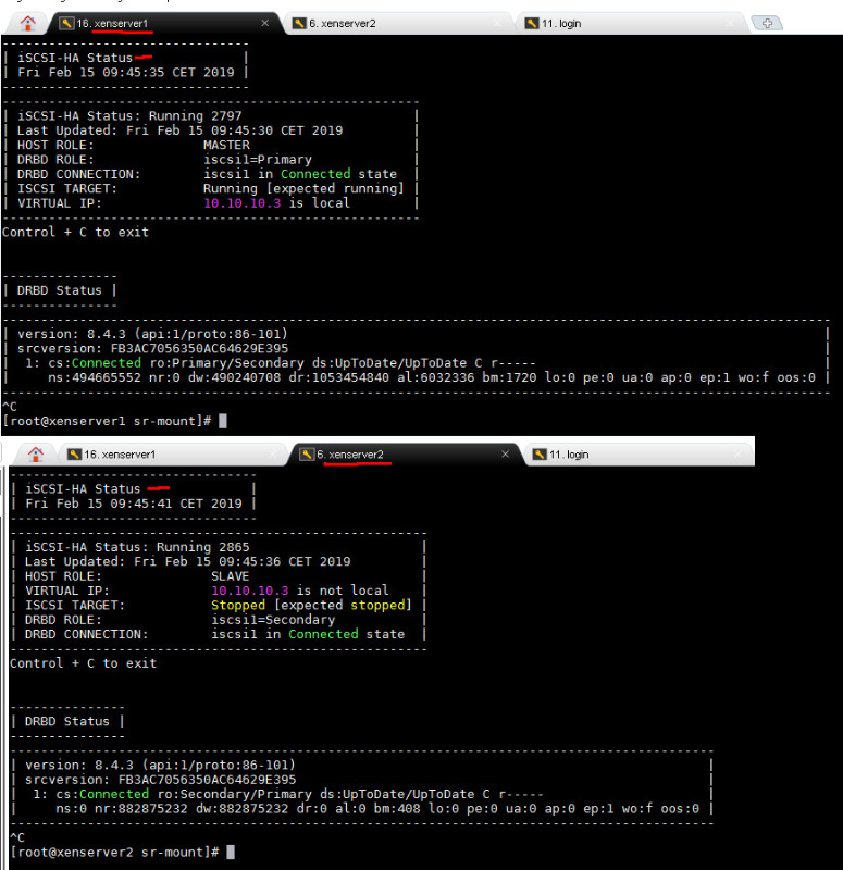 - Second server, xenserver2, it's running 2 VM's. And it's the slave of the HA and iSCSI-HA.
