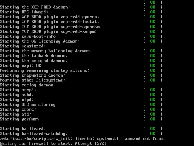 after upgrading HA-Lizard and iSCSI-HA on my XenServer 6.5 it hangs while rebooting the host while the firewall script entry on line 65 is not found. After the time out of the script the host is starting.