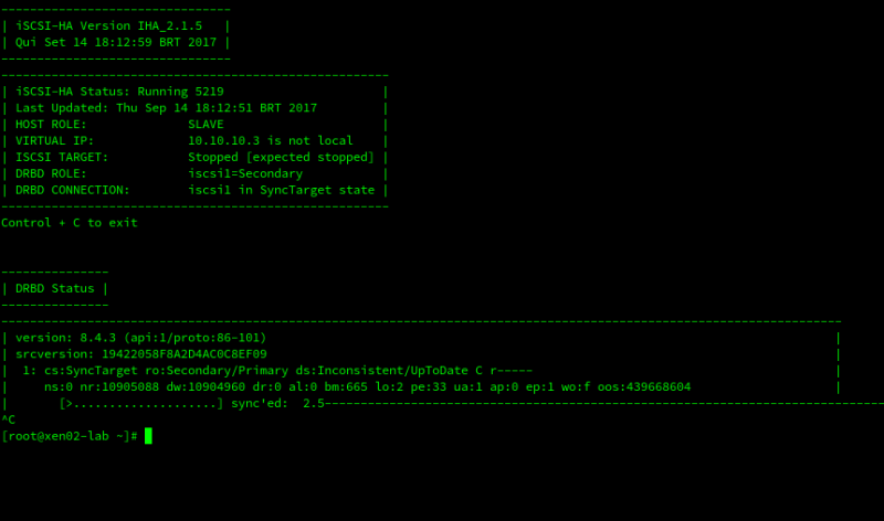 when I target manually on xen01 (primary) with the tgtadm command, I can map it quietly.