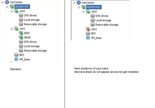 AS soon as we hard power off the slave node, VM disappear from XENCENTER and never got restarted. I check on the pool master, the VM is still running for him on a dead server, even after several minutes watiting for any reactions.